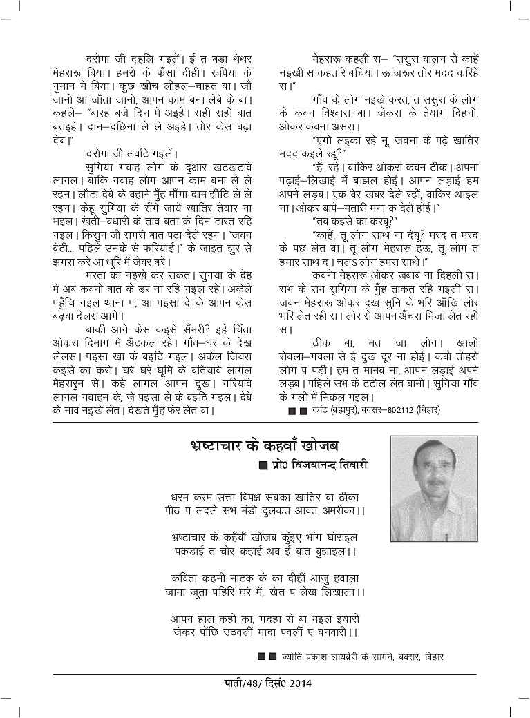 पिछला पन्ना <<<<< . . . . ( पाती, दिसंबर 2014 अंक 74 ) . . . . >>>>> अगिला पन्ना
