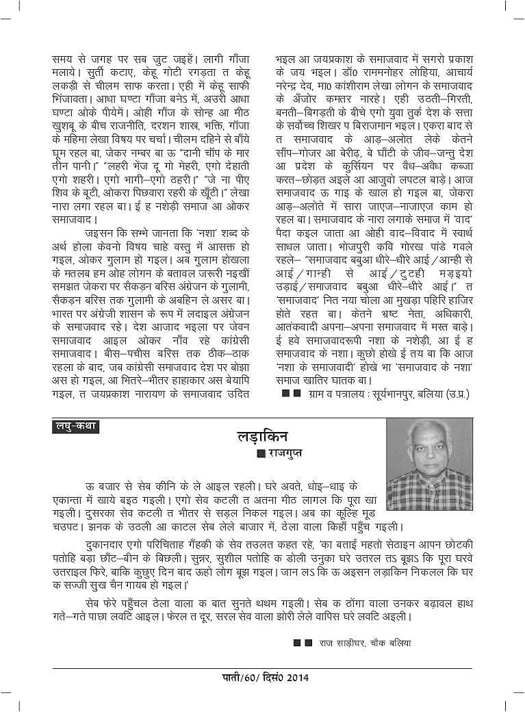 पिछला पन्ना <<<<< . . . . ( पाती, दिसंबर 2014 अंक 74 ) . . . . >>>>> अगिला पन्ना