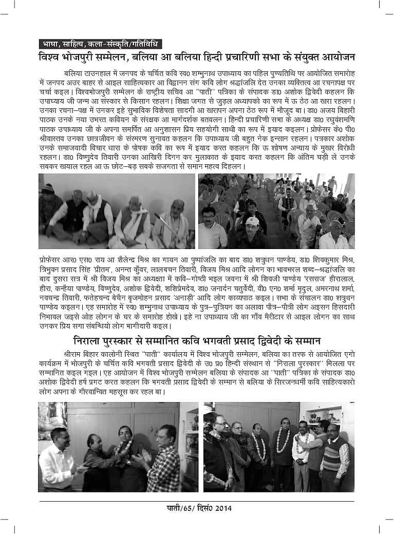 पिछला पन्ना <<<<< . . . . ( पाती, दिसंबर 2014 अंक 74 ) . . . . >>>>> अगिला पन्ना
